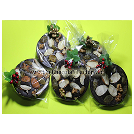 Mendiant, a traditional French confection which consists of a chocolate disk studded with nuts and dried fruits. Disc Size 6.5cm diameter. Dark discs 32 - 35 gms each.