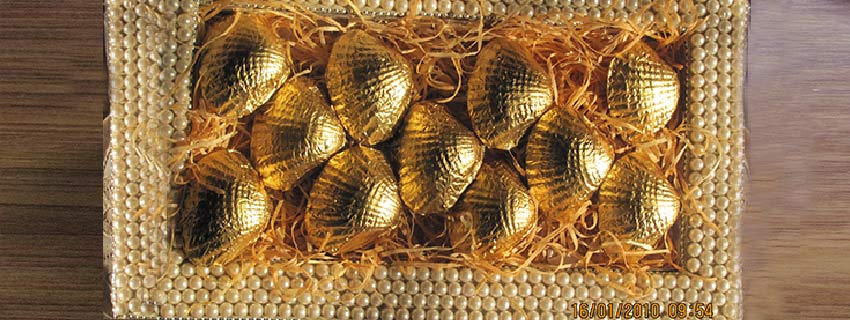We at Reema Singh’s The Chocolate Factory provide a variety of platters/trays to choose from. Each platter, filled with premium quality handcrafted, homemade chocolates, is well designed to suit the occasion as well as the pocket