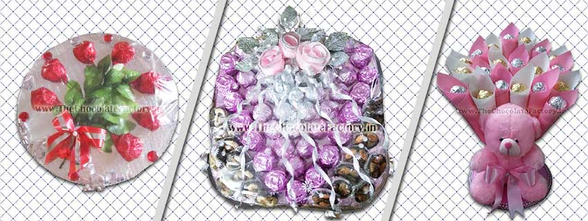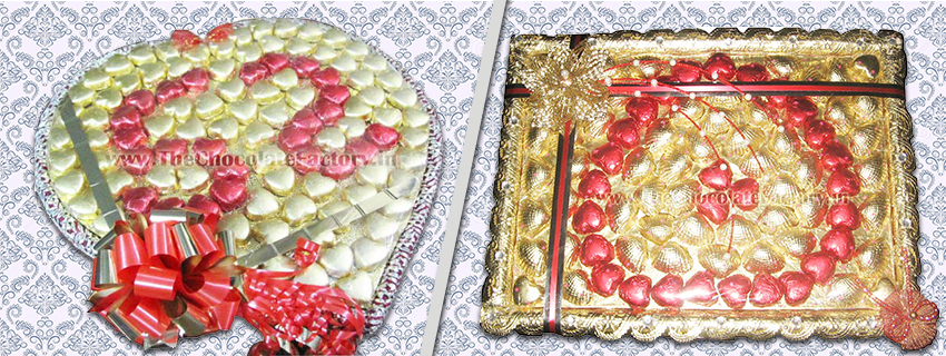 We at Reema Singh’s The Chocolate Factory provide a variety of platters/trays to choose from. Each platter, filled with premium quality handcrafted, homemade chocolates, is well designed to suit the occasion as well as the pocket!!