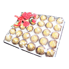 A tray with handcrafted premium quality homemade truffle chocolates, adorned with beautiful decorations. Packing can be custom-made to order. Assorted Truffles 30 pieces (approx 600gms).