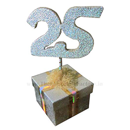 A cardboard box mounted with the cut-out "25", with handcrafted premium quality homemade chocolates. Its well suited for 25th birthday or wedding anniversary. Packing can be custom-made to order. With dark plain chocolates 15 pieces