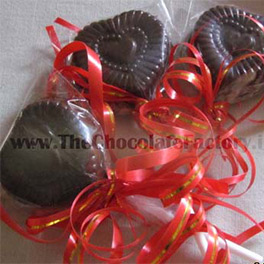 Handcrafted, premium quality, homemade heart shaped dark chocolate ; adorned with red ribbons. Packing can be custom-made to order. Dark Chocolate with a biscuit inside. 80 gm each.