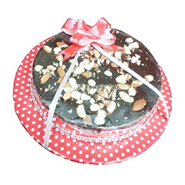A small tray, with handcrafted premium quality homemade chocolate dryfruit disc, packed like a cake. Packing can be custom-made to order. Dark chocolate with dryfruits 200 gms.