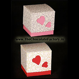 An attractive paper box in pink and red with hearts print suitable for 10-15 handcrafted premium quality homemade chocolates. Dark plain chocolates 15 pieces (approx 13 gm each).